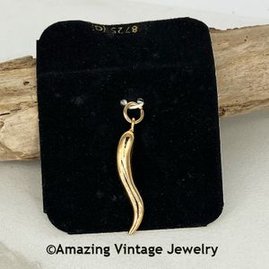 Pendant/Drop - Sarah Coventry. "ITALIAN HORN" from 1976. Polished goldtone. 1 1/2" long. Excellent condition still attached to the original card - no box.